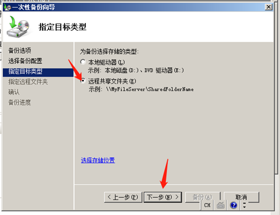 8、因为我用的linux服务器的smb服务,所以在这里我选择远程共享,在本文后面,我也会教大家搭建linux的smb服务。如果你这边被分到本地服务器的别的盘,就选择本地驱动。