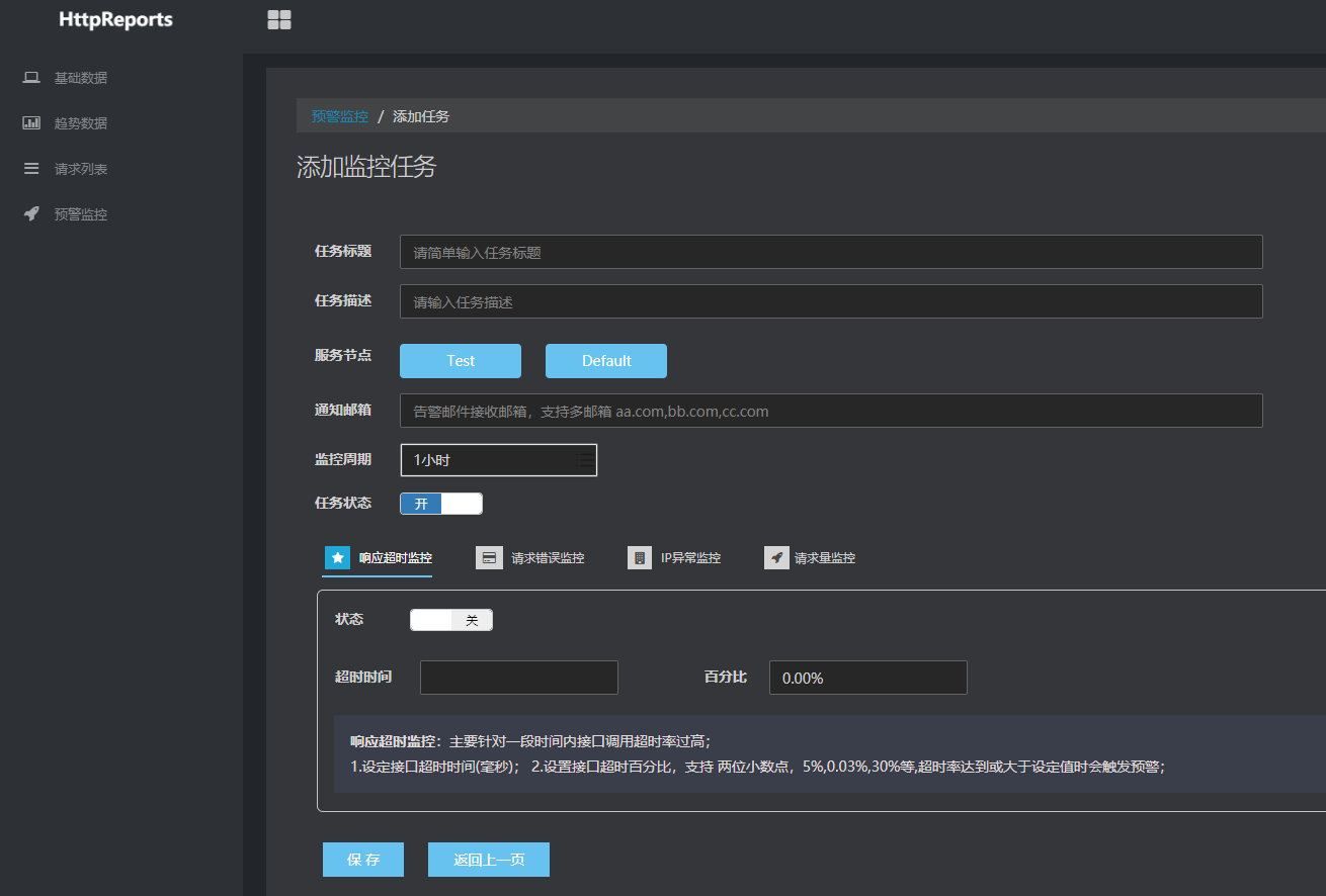 HttpReports.Dashboard 集成了预警监控功能,使用的话需要先配置 Smtp 邮箱,否则接收不到预警邮件哦