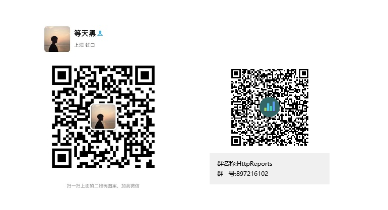 如果您在项目中使用了HttpReports,或者感兴趣的可以加入QQ群,大家一起沟通,有更新也会第一时间通知,也可以添加我的微信,希望可以帮助到您