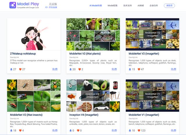 Gravitylink 基于 Edge TPU 软硬件以及国内 AI 行业生态,打造出全球化 AI 算法及解决方案交易市场——「钛灵 AI 市场」,致力于帮助来自全球的优秀 AI 服务商与需求方建立更加高效的直连对接,加速 AI 技术在各领域的落地、应用。这里不仅有基于企业需求对接的 AI 商业平台,更提供了 AI 产业所需的多维度机器学习模型、算法及硬件。