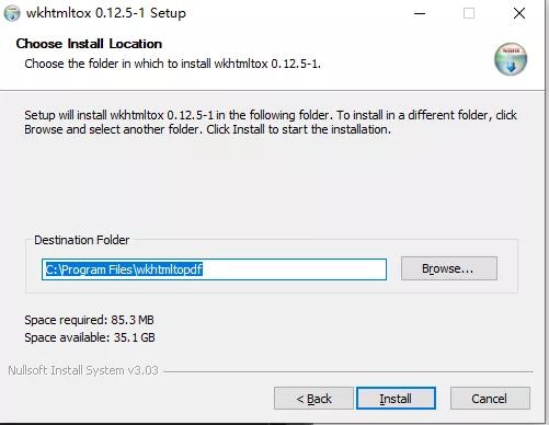 务必要记住安装地址,找到wkhtmltopdf.exe文件所在的绝对路径,后面要用到。