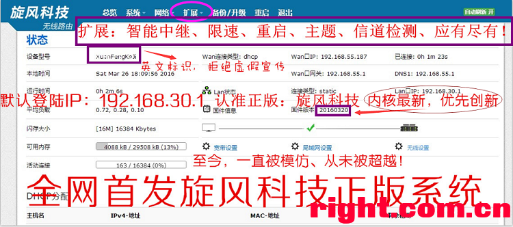 旋风二代三代四代登陆IP均为:192.168.10.1 有兴趣的去折腾