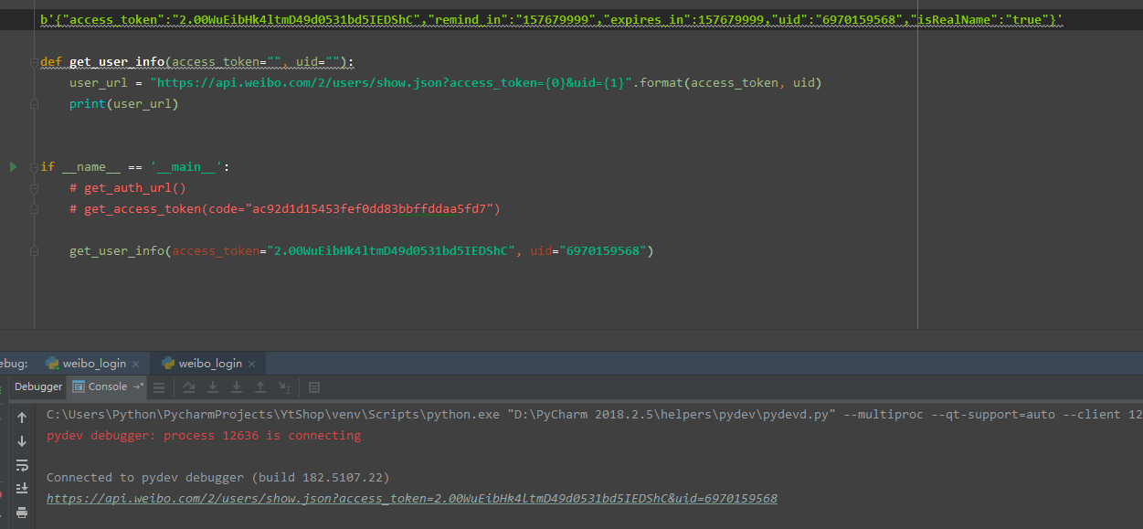 请求回传中可以拿到一串认证信息 , 包括 uid,以及 access_token , 至此算是授权登录成功, 基于这些信息才可以进行其他必须登录后的访问操作