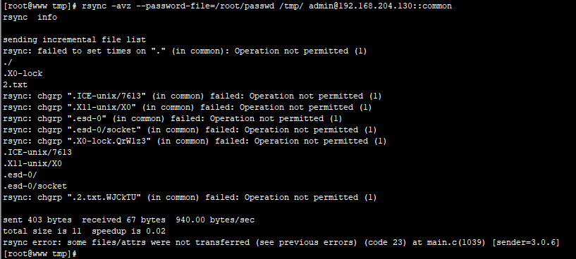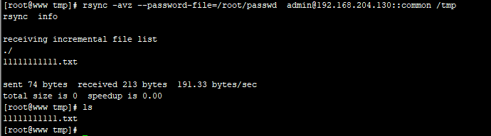 rsync -avz --password-file=/root/passwd /tmp/ admin@192.168.204.130::common