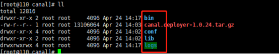 可以删除安装包canal.deployer-1.0.24.tar.gz了