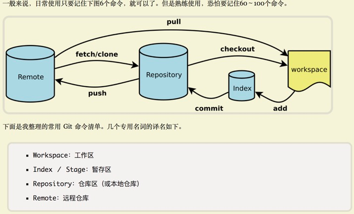 下图为截取的阮一峰博客的关于git常用命令总结的一张图片: