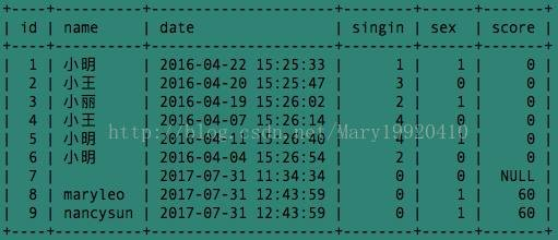 例2:在例1的结果中三个字段id,name,score的组合没有分隔符,我们可以加一个逗号作为分隔符: