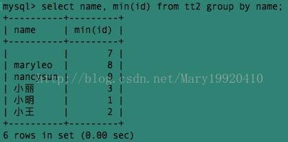 该例查询了name相同的的人中最小的id。如果我们要查询name相同的人的所有的id呢?