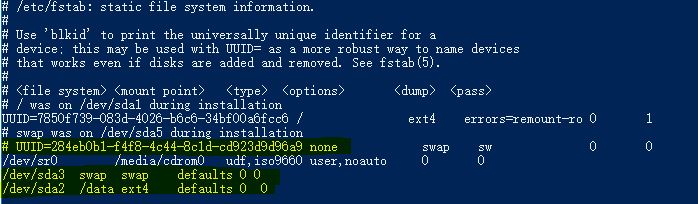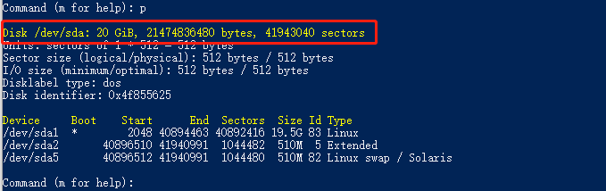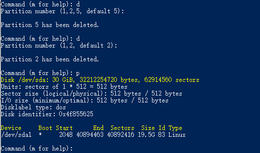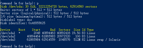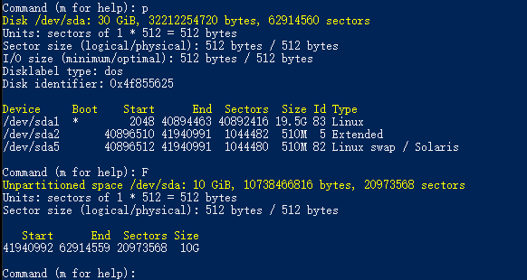 w 保存退出 使分区信息立刻生效:注意通过swapoff /dev/sda5关闭交换分区