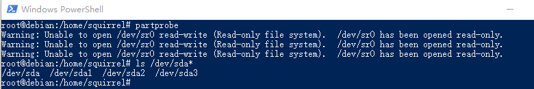 注意:因为之前创建分区时删除了原有分区,导致原有分区无效,需要剔除无效信息,否则系统检测不到对应已删除的分区,出现警告报错信息