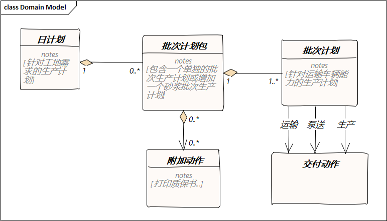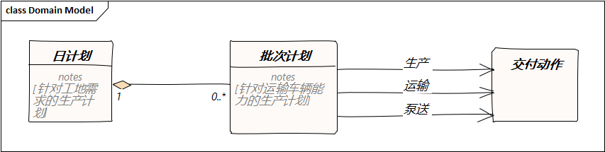 以上描述了混凝土搅拌站生产计划模型的初步演进过程,其中大量借鉴了Martin Fowler 分析模式。当然这知识初步的模型,还有很多不合理的地方等着我们去重构。