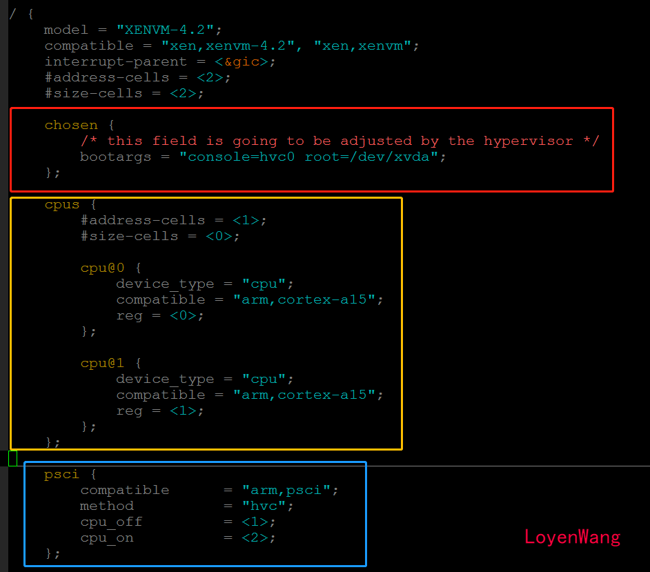 那么如何从Device Tree到实际的解析和配置中来的呢? 下面以arch/arm/boot/dts/xenvm-4.2.dts为例: