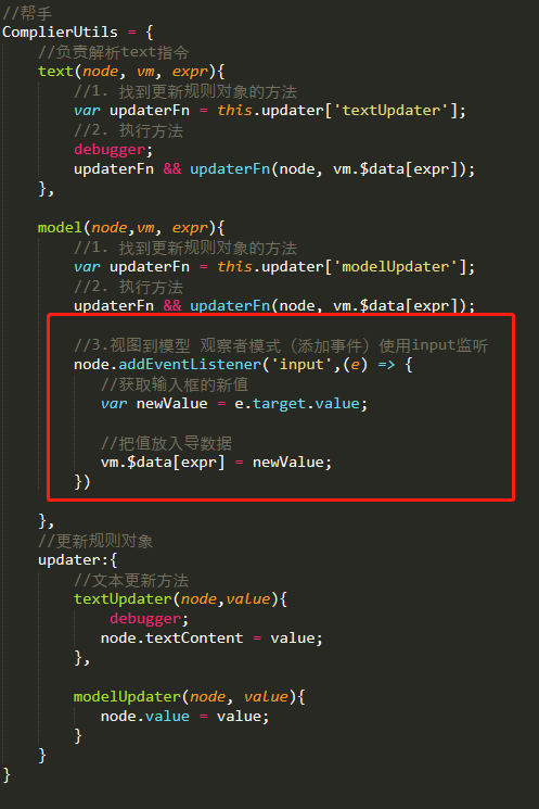 vue的数据双向绑定 将MVVM作为数据绑定的入口,整合Observer,Compile和Watcher三者,通过Observer来监听自己的model的数据变化,通过Compile来解析编译模板指令(vue中是用来解析 {{}}),最终利用watcher搭起observer和Compile之间的通信桥梁,达到数据变化 —>视图更新;视图交互变化(input)—>数据model变更双向绑定效果。