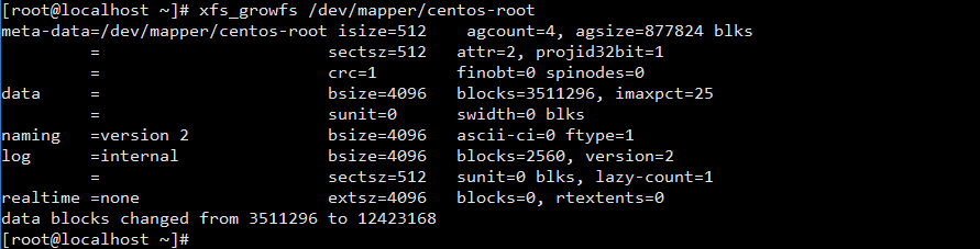 lvextend -l +100%FREE /dev/mapper/centos-root