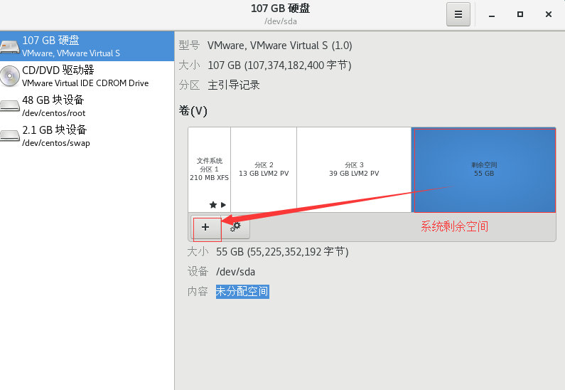 点击剩余空间,添加新分区,选择想要扩容的大小