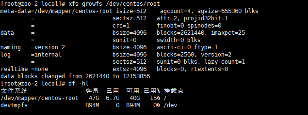 虽然说有“37.8G ”的可用空间,但是我们无法全部使用,只好在lvextend命令中,减少一点了,不然会报错