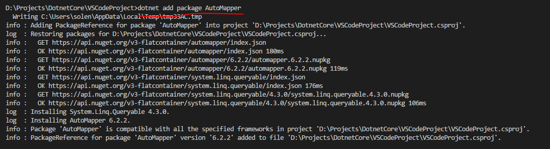 这时, csproj文件里就会出现AutoMapper的PackageReference: