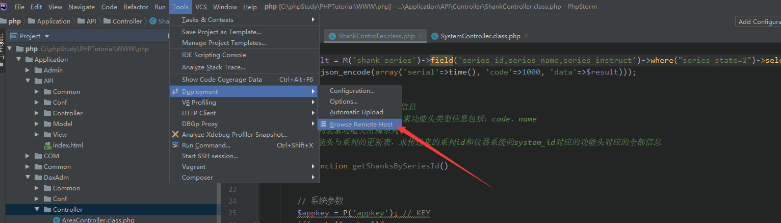 1、在phpstorm编辑器,点击Tools->Deployment->Browse Remote Host ,进入到添加新的链接服务器的页面如图所示: