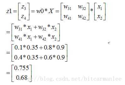 首先我们先走一遍正向传播,公式与相应的数据对应如下: