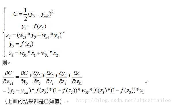 这个时候我们需要求出C对w的偏导,则根据链式法则有: