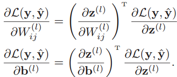 我们就拿第l层中的参数矩阵W(l)和b(l)为例,计算损失函数对参数矩阵的偏导数。但因为