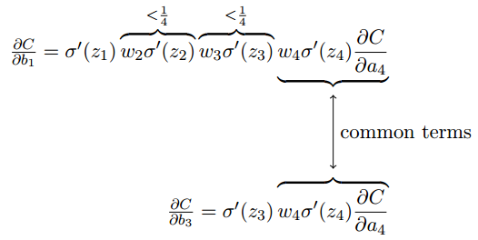 进行对比,如下图。可见前面的神经元的偏置的梯度是后面的1/16甚至更小。所以梯度消失产生的原因主要就是激活函数的导数值太小。