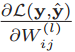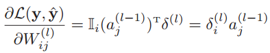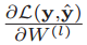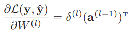 进一步,损失函数关于第l层权重W(l)梯度为: