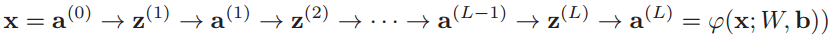 这样前馈神经网络通过逐层的信息传递,得到网络最后的输出a(L)。整个网络可以看做是一个复合函数,将向量x作为第1层的输入a(0),将第L层的输出a(L)作为整个函数的输出。