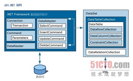 从Ado.Net的工作原理图可以看出,不管用哪种方式和数据库打交道,都必须有三个的东西:Connection,Command和Sql语句。