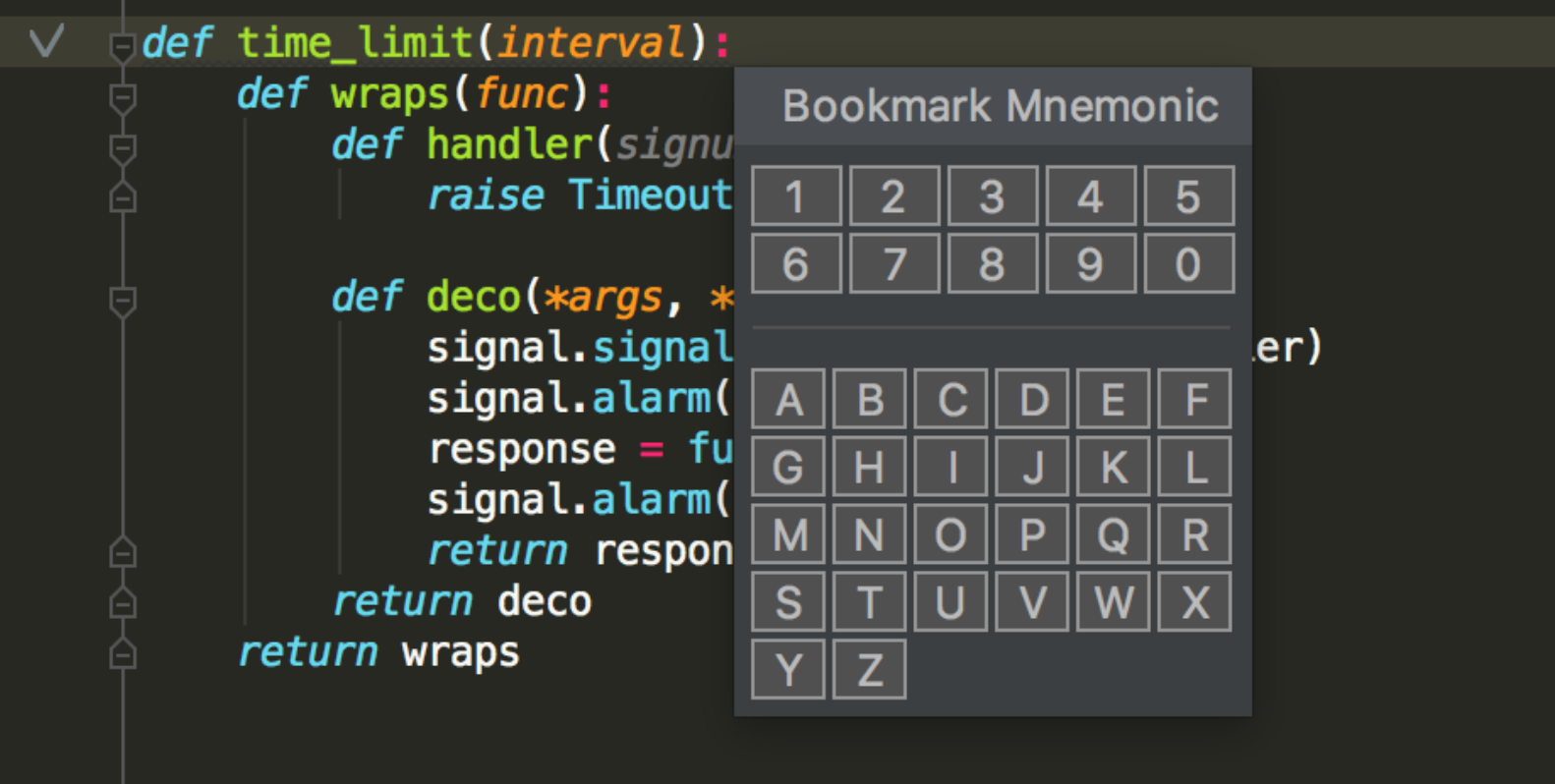 直到后来我发现了 Pycharm 这个书签功能。