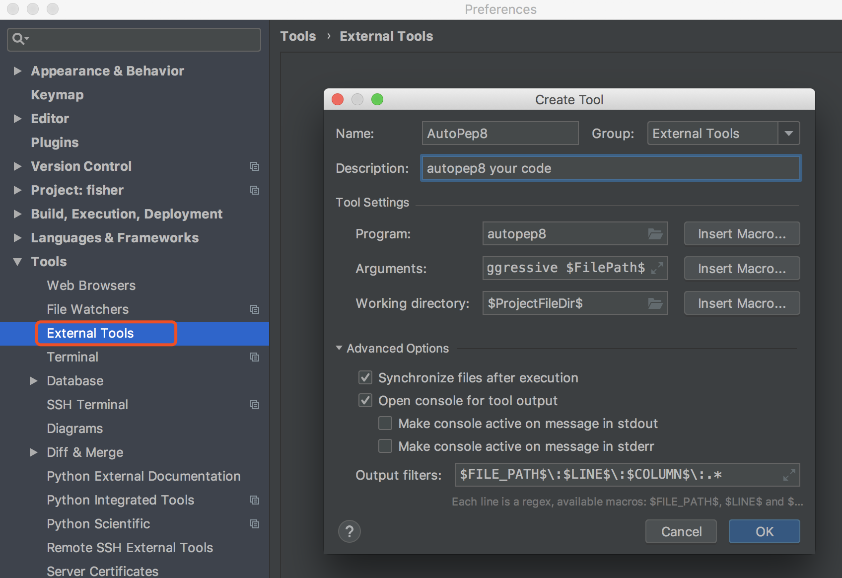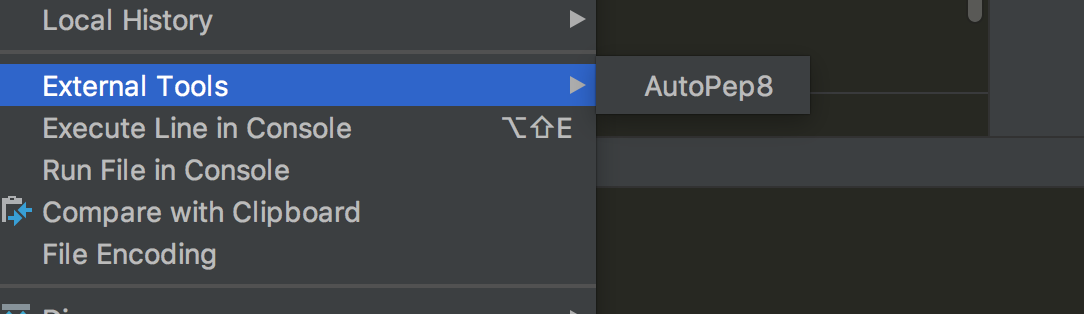 点击右键,选择 External Tools -> AutoPep8