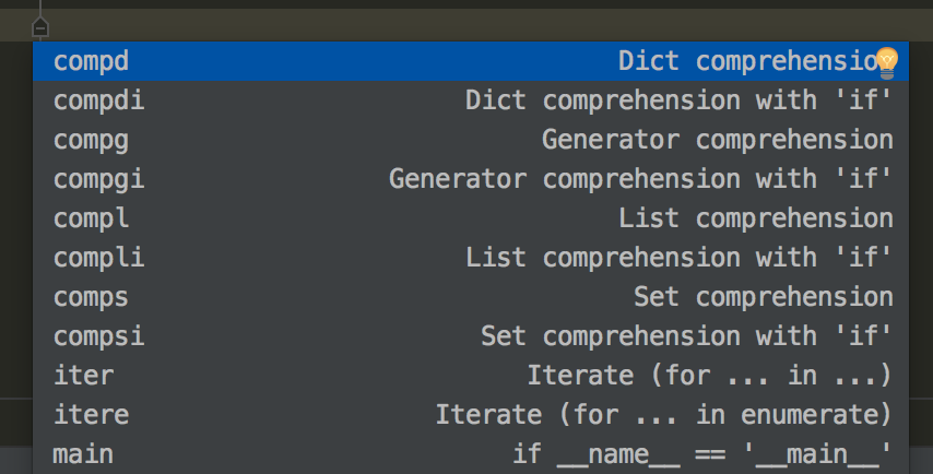 除了新建文件时可以初始化文件,在开发编写代码时,也同样使用 Pycharm 中自带的实用的代码模板,提高你的编码效率。