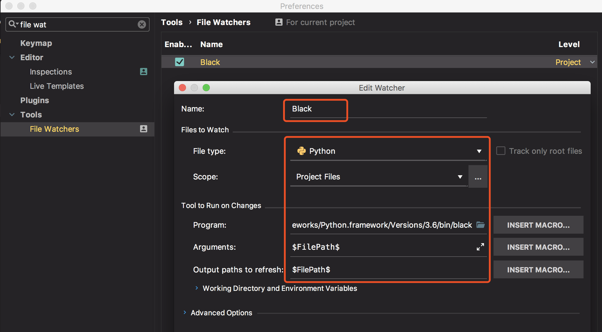 Working directory: $ProjectFileDir$