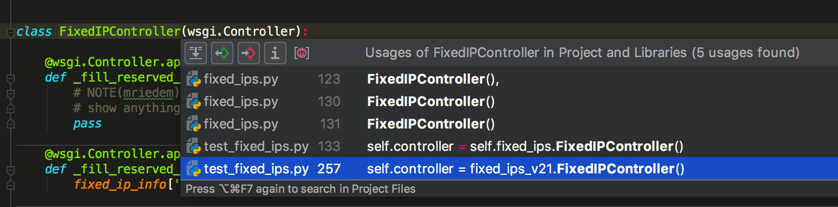 这个时候,你急需有一种方法,可以快速给你列出有哪些地方调用了这个类。