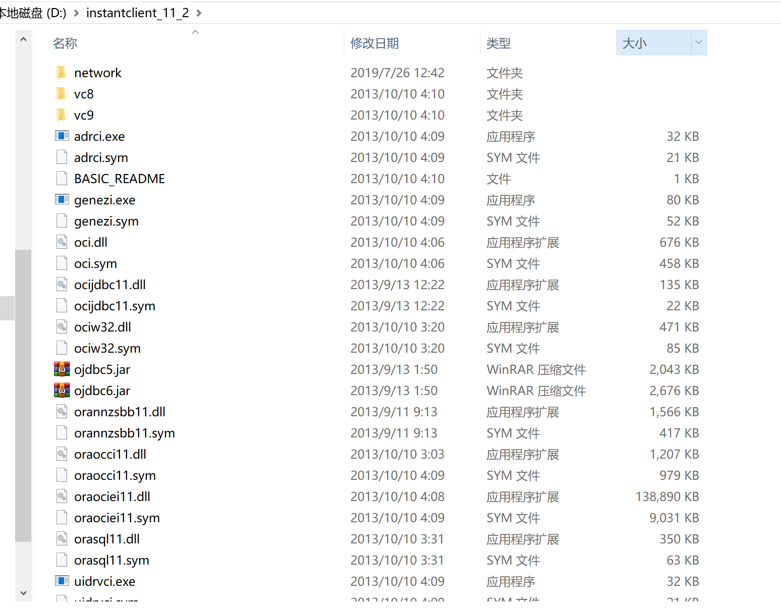 2.3 解压到instantclient_11_2目录下,