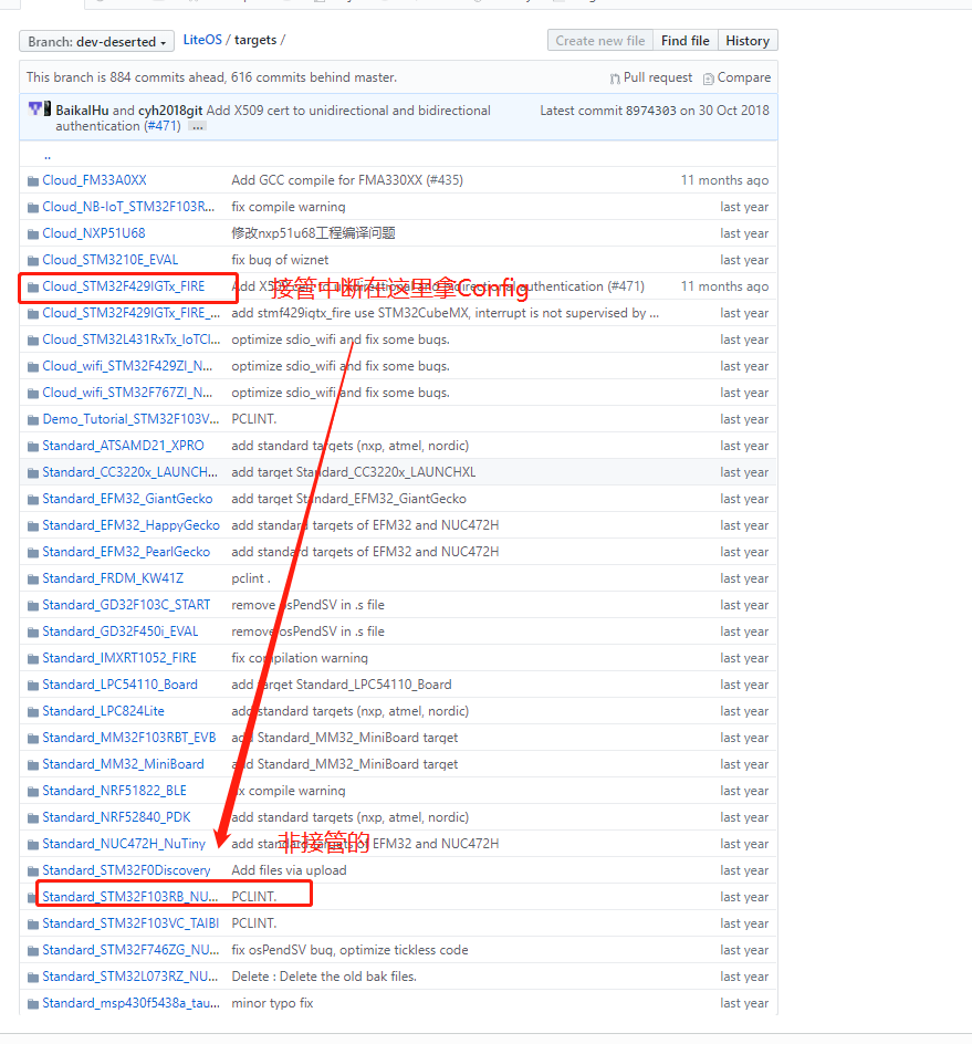 非接管中断版本的 target_config.h 文件就需要在 LiteOS 提供的 demo 中移植过来 , 比 如 : LiteOS\targets\STM32F103RB_NUCLEO\OS_CONFIG,启动文件不变,保留stm32f10_it.c但需要注释 void PendSV_Handler(void)与 SysTick_Handler(void)这两个函数