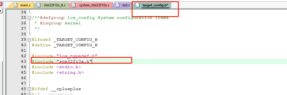 接管中断版本的target_config.h文件就需要从 LiteOS 官方写的工程文件夹下面拷贝过来的,路径为\LiteOS\targets\ STM32F429IGTx_FIRE\OS_CONFIG