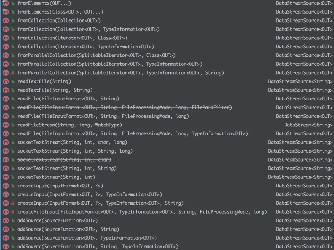 StreamExecutionEnvironment 中可以使用以下几个已实现的 stream sources,