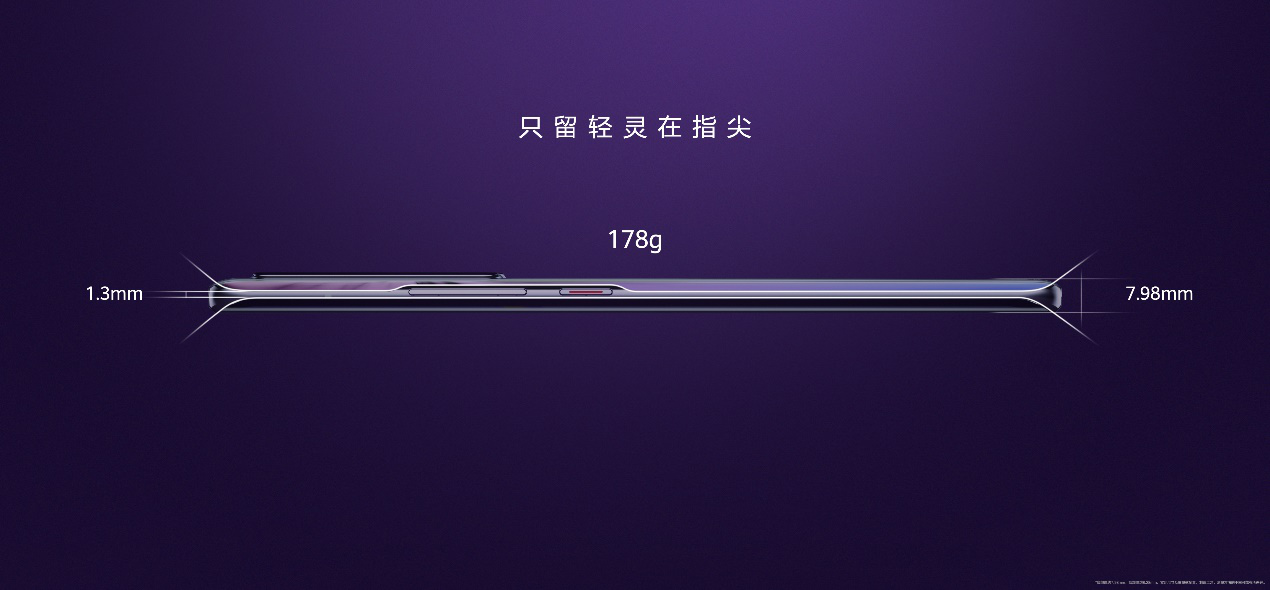 nova作为面向全球亿万年轻人的创新潮流旗舰,“高颜值”一直是显著的DNA之一。从nova5的绮境森林,到nova6普罗旺斯,再到nova7系列7号色的全新双膜双镀工艺,nova在3D工艺光影美学上不断突破,引领全新光影美学。nova7 Pro机身最薄处为7.98mm,顶部厚约为8.28mm,机身重量约为178克(含电池),在满足旗舰性能体验的前提下,用轻薄体验打造受年轻人欢迎的5G潮流旗舰。