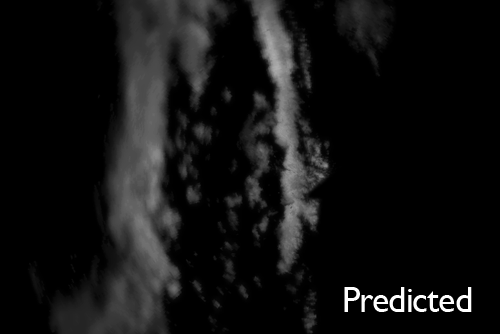 为了使结果更加直观,研究人员用颜色替换箭头,制作出一张三通道图像。图像中,红色代表x方向的速度,蓝色代表y方向的速度,绿色代表风暴强度的变化。