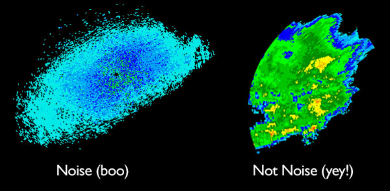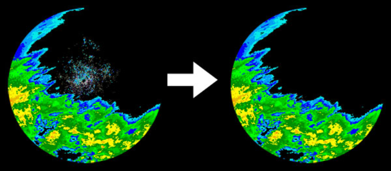 除了有用的气象数据,雷达网络还会收集到一些噪声,比如地面反射波、虫鸟的迁徙活动和一些人类活动等。这些信息有可能被误认为是降水信号。因此,第一步要对雷达数据进行筛选。