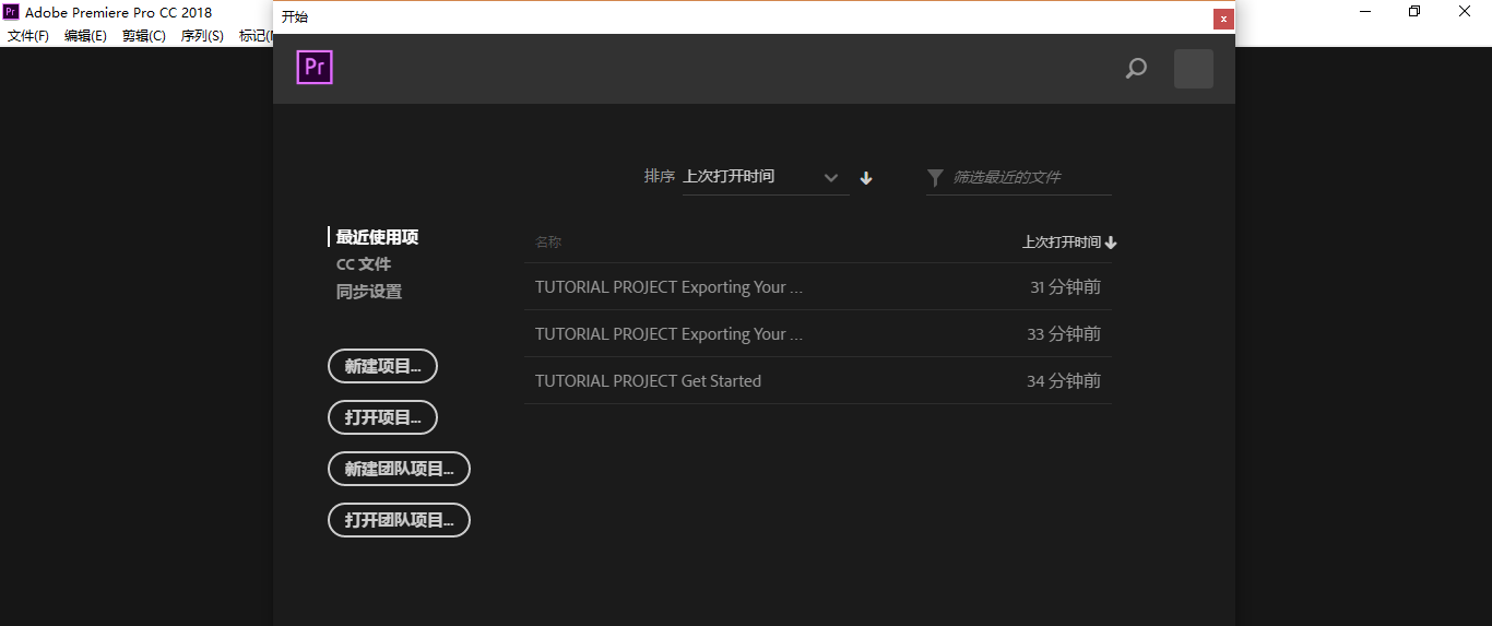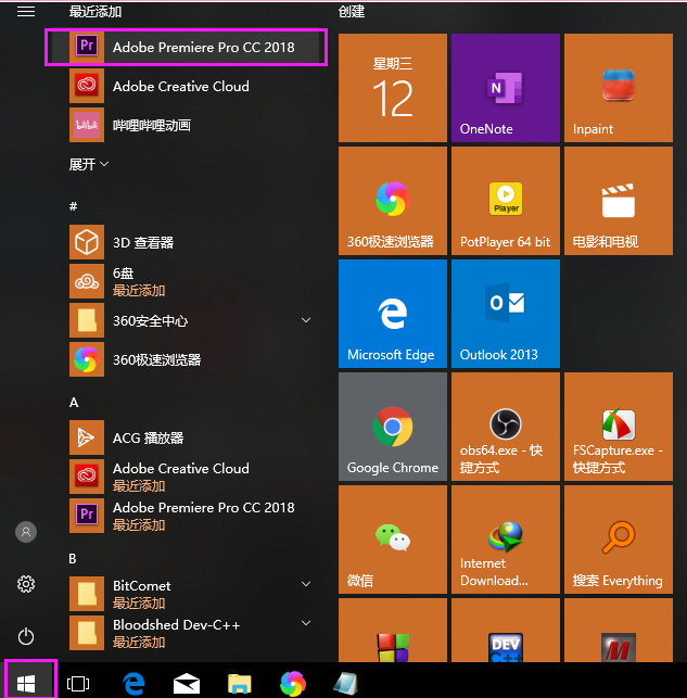 在开始菜单中点击Adobe Premiere Pro CC2018软件图标