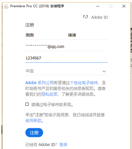 安装的时候我们需要注册一个账号,点击“获取Adobe ID”;已经有账号的用户可以直接登陆。