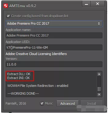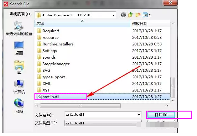 点击注册机右下角的Install,然后会跳出文件资源管理器让你找一个dll文件。如果是默认路径就打开C:\ProgramFiles\Adobe\Adobe Premiere Pro CC 2018,找到后选择软件根目录下的amtlib.dll ,打开。