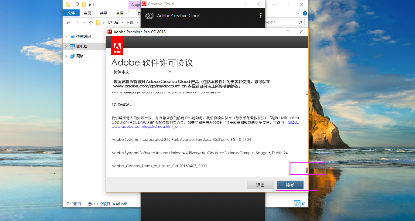 1.安装过程中,不停的弹出软件的接受许可协议,点接受了一直弹出