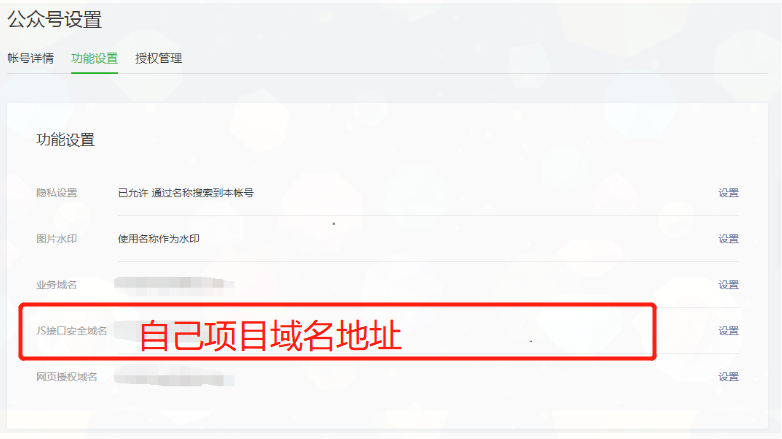 先登录微信公众平台进入“公众号设置”的“功能设置”里填写“JS接口安全域名”。