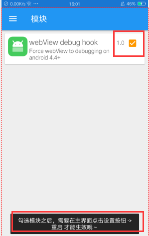 Xposed是一个框架,能够集成很多功能模块,这些模块能够在不修改APK的情况下,修改APP的运行方式,这里我们需要WebViewDebugHook模块来开启APP的WebView debug模式