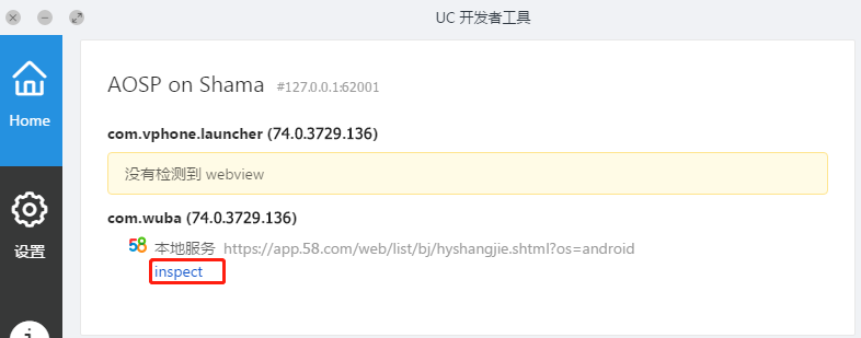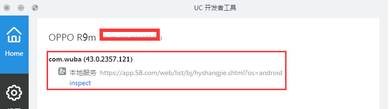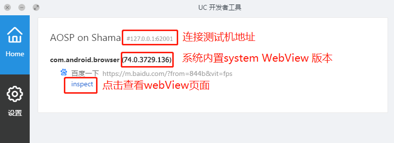 (2)此时打开UC开发者工具(前提开启USB调试,adb devices检测到设备)