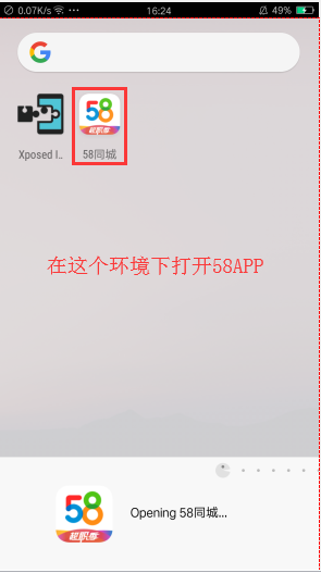 2.假设此时需要对58同城app进行元素定位及自动化脚本编写,此时我们需要将58同城安装到虚拟环境VirtualXposed中去,同上步骤操作!