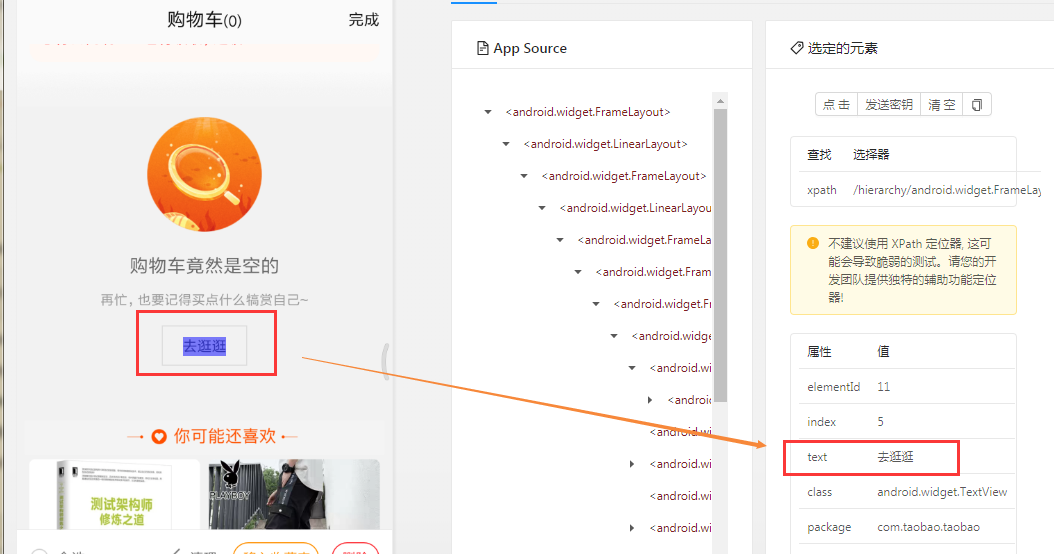 loc = (MobileBy.ANDROID_UIAUTOMATOR, 'new UiSelector().text("去逛逛")')